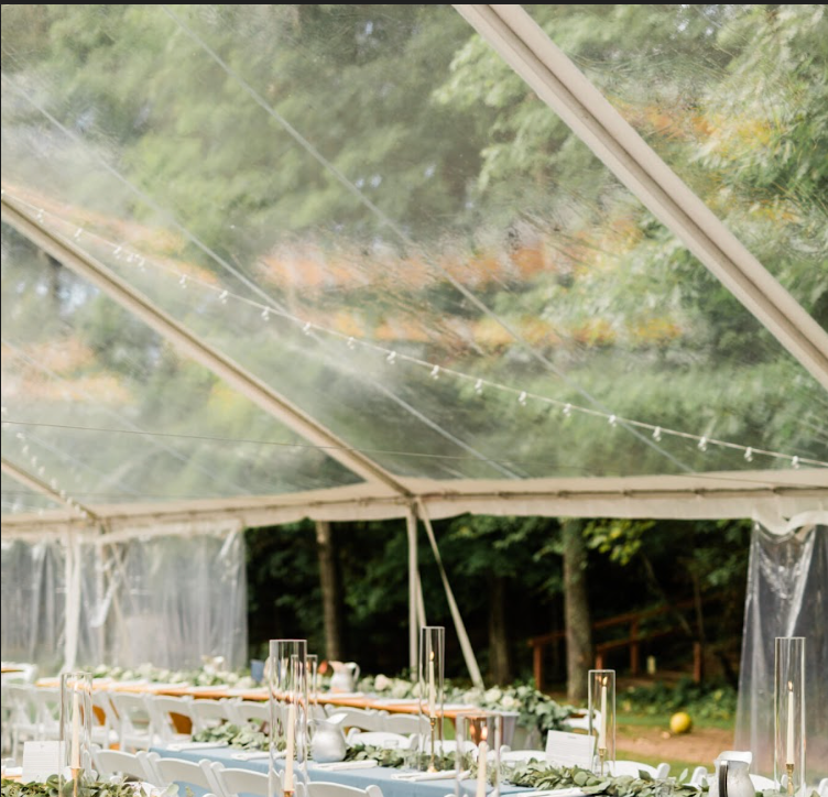 Determining what size clear tent you need is fairly straightforward! Since clear tents are installed on frame tent frames, determine what size frame tent you need. Check out our chart here. You simply need to know how many people you plan to host and what kind of seating arrangement you’d like to have. From there, we can help you decide the right size clear tent for you.